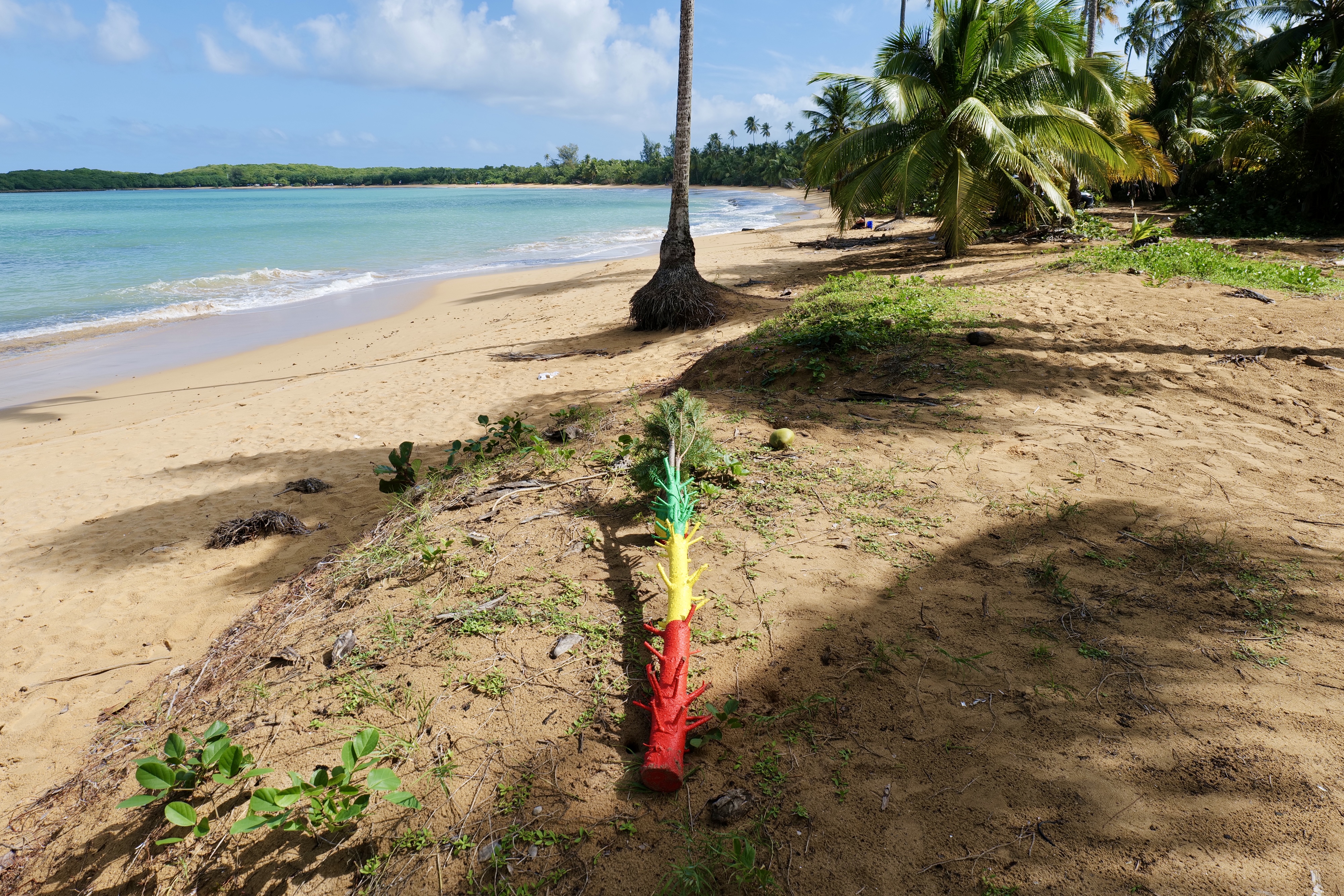 Municipal latex paint from Loíza on coconut and cut fir tree