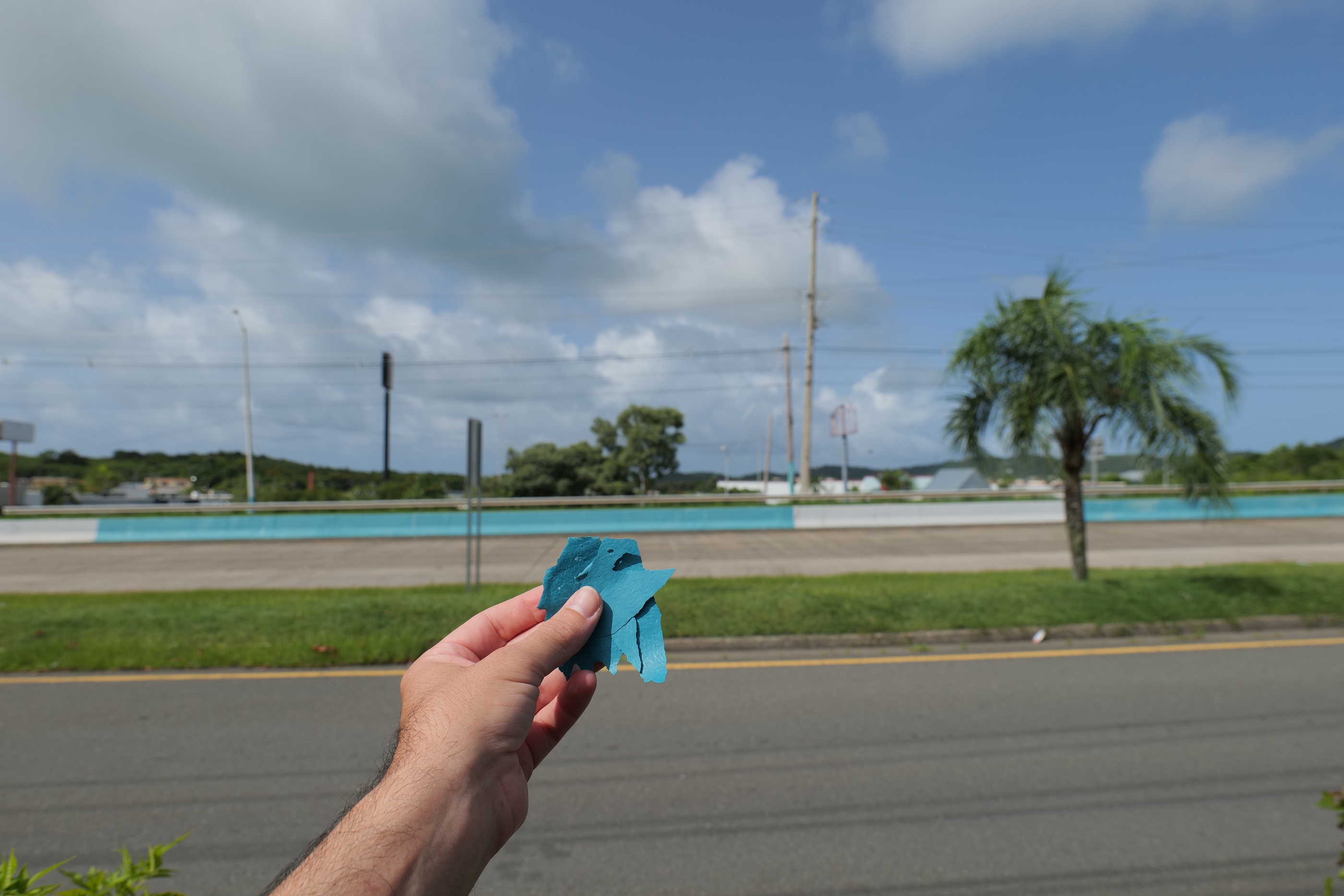 Continuing our research of municipal painting in Puerto Rico, during this residency we expanded our work towards a form of sculptural painting. Reproducing the surfaces of wooden utility poles, incorporating hardware pieces, cables, and age-related qualities as pure visual language (the concrete as abstract). And looking to define a “tropical-edge” form of geometric abstraction: a loose, object-heavy variant of the hard-edge form, but unworried about post-painterly qualities such as precision, harmony... purity. Instead, asserting notions of tropicality with all its political, post-colonial associations.